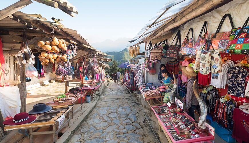 Reaching Sapa town, we will firstly take a walk down hill to the local market where selling colorful handmade traditional costumes, herbs, and accessories. It’s a fine chance for you to choose a perfect souvenirs for you friends and family back home.