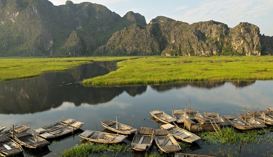 Expand All +Leaving the vibrant atmosphere of the capital city Hanoi, depart to Ninh Binh - to the south and approximately 110 kilometers away from Hanoi. Our first stop for today schedule is Van Long Nature Reserve - where shooted the blockbuster movie - Kong: Skull Island.