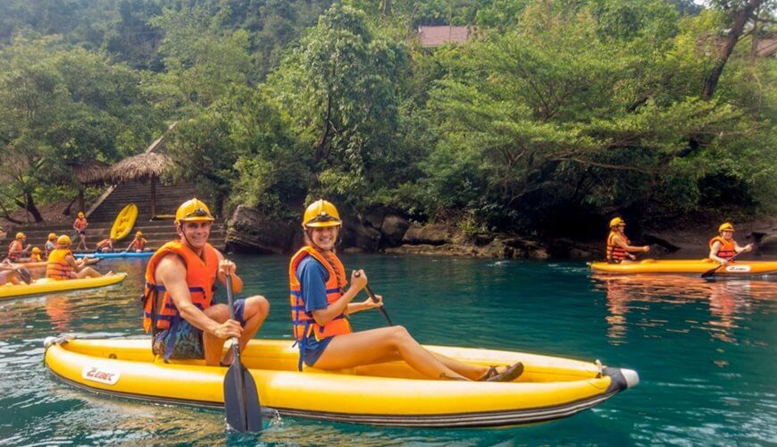 On the Chay River, you can try kayaking to feel the wind breeze and watch the lives under the turquoise water and the reflection of the extraordinary limestone mountains. On the river banks, the cornfields stretch along the way create such masterpiece of the nature.